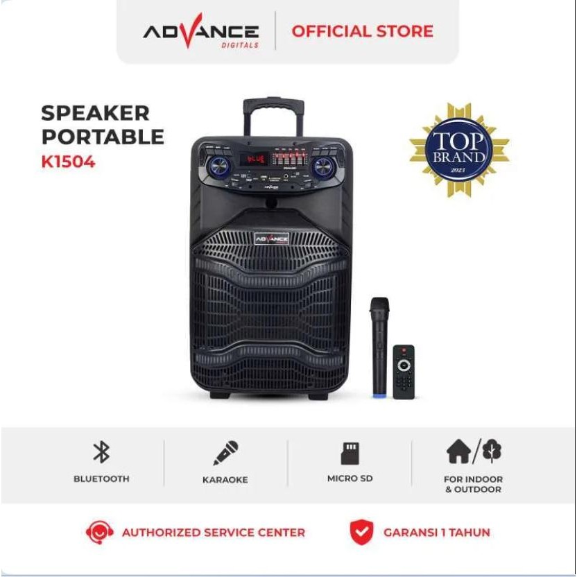 Advance K-1504 Speaker Bluetooth Portbale 15" Xtra Bass Power Sound 2 Mic Wireless Garansi 1 Tahun