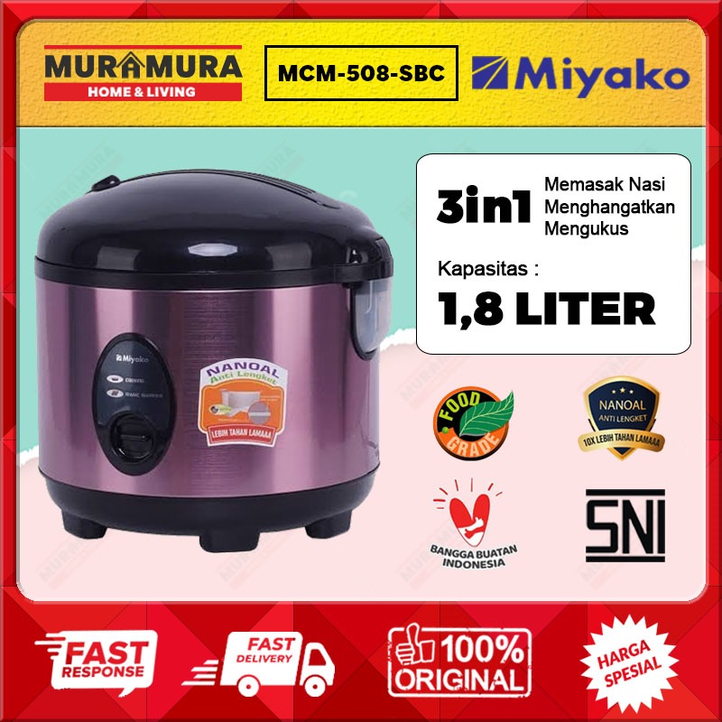 MIYAKO MCM-508-SBC Rice Cooker / Magic Com 1,8 Liter 3in1 Panci Nanoal Original Garansi Resmi