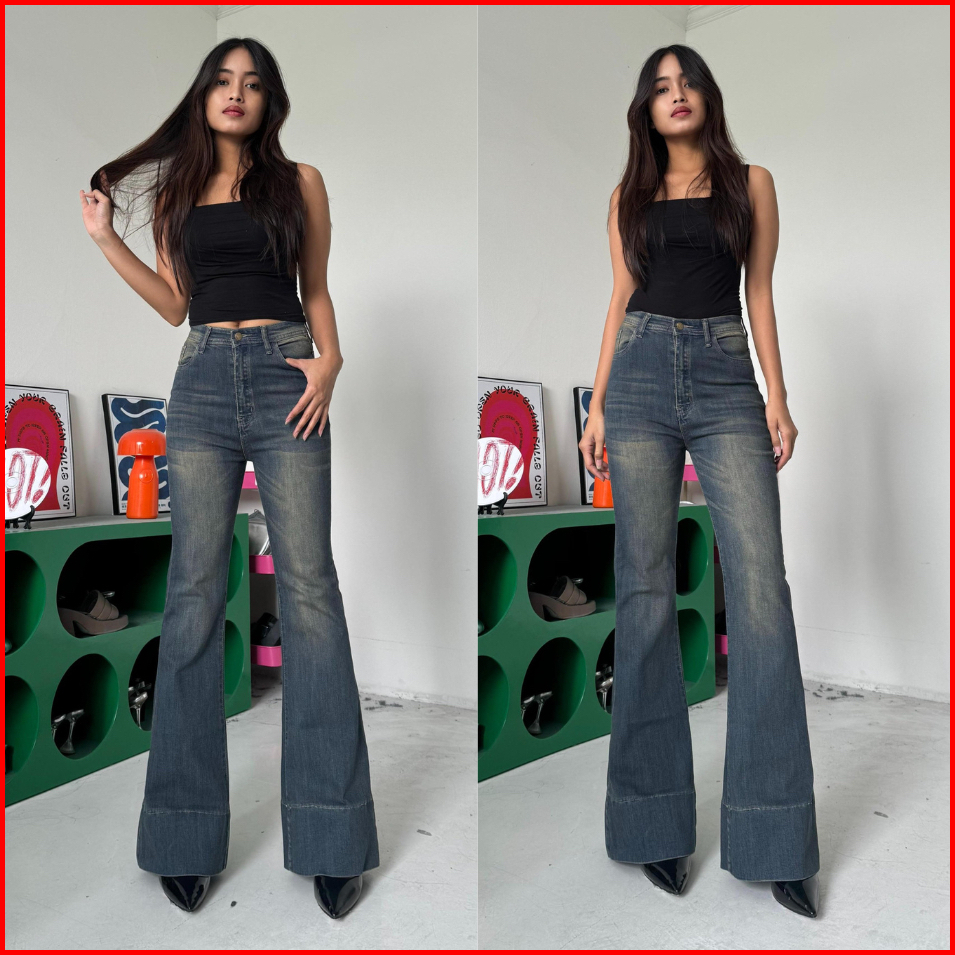 Ladouce - Mckenzie Flare Boot Cut Cutbray Jeans Celana Panjang Wanita High Waist Denim