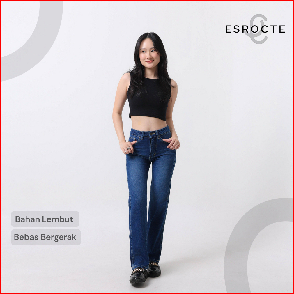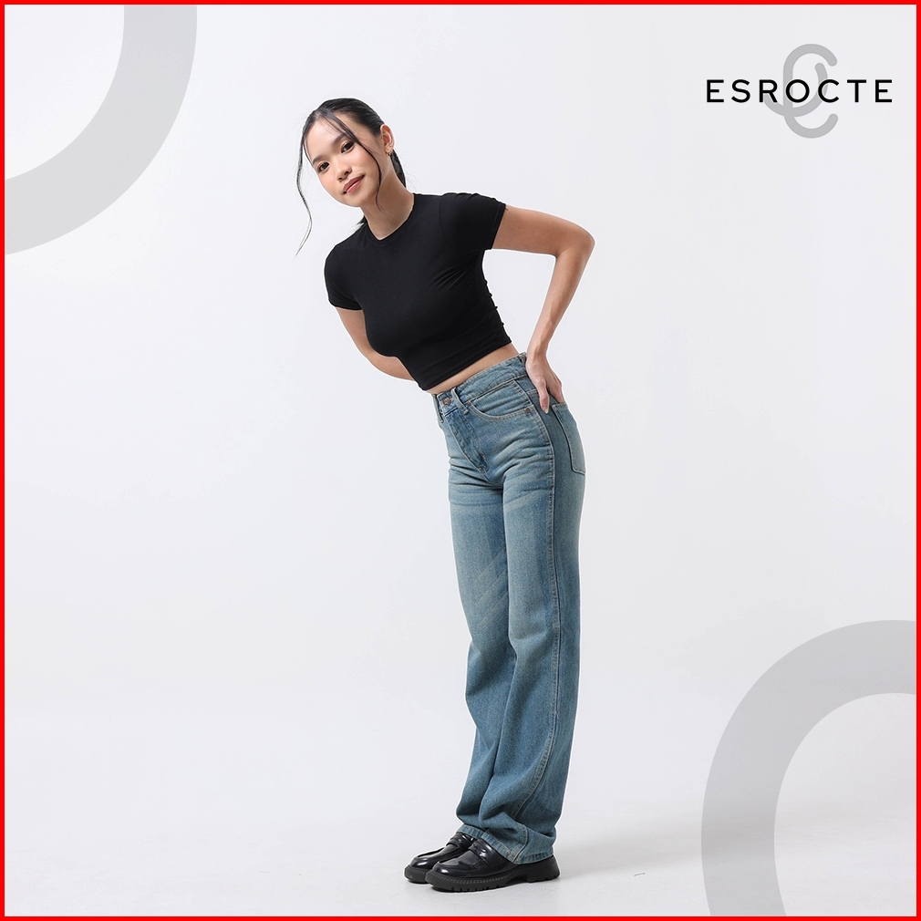 Esrocte Naia Pants Celana Loose Jeans High-waist Wanita Whisker Spray Edition 2638