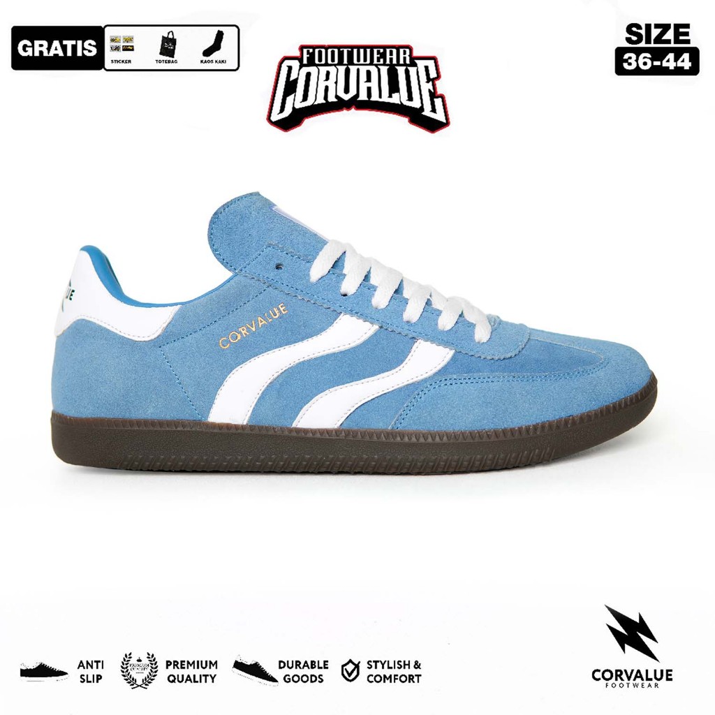 CORVALUE - Oshika Full Suede Sky Blue | Sepatu Pria Wanita | Sneakers Pria Wanita Shoes Casual