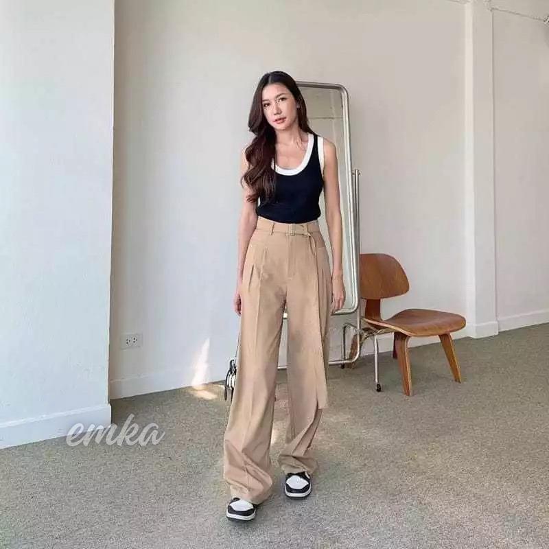 Emkaofficial - Obi Pants - Celana Highwaist Trousers Loose Pants - Celana Kulot Kantor Formal Anti Kusut Casual Murah Gr