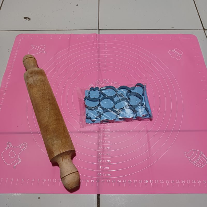 Set Alas Adonan Silicone Roll Pin Dan Cetakan Kue Kering Kastengel Putri Salju