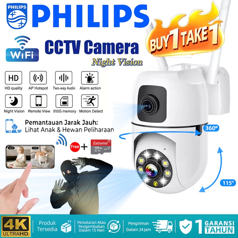 Philips Cctv Kamera [Beli 1 Gratis 1] Pro Outdoor Dual Lens Cctv Hd 8Mp Wifi 360° Motion Detect Two-Way Voice Auto Track