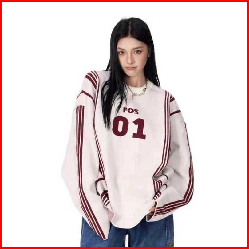 Focus 01 Boxy Sweater Knitwear Akrilik Pakaian Sporty Atasan Oversize Cardigan Dewasa Crewneck Sweater Katun Lemb
