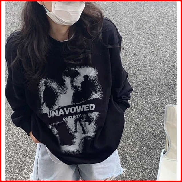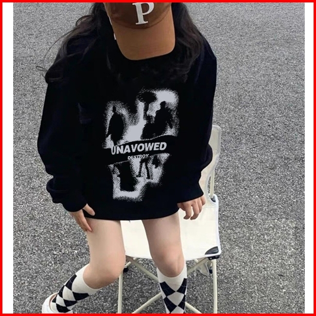Forteid Sweater Lengan Panjang Oversized Street Style Korean Style Switer Wanita Oversize Pencetakan Tanda Air Korea Kor