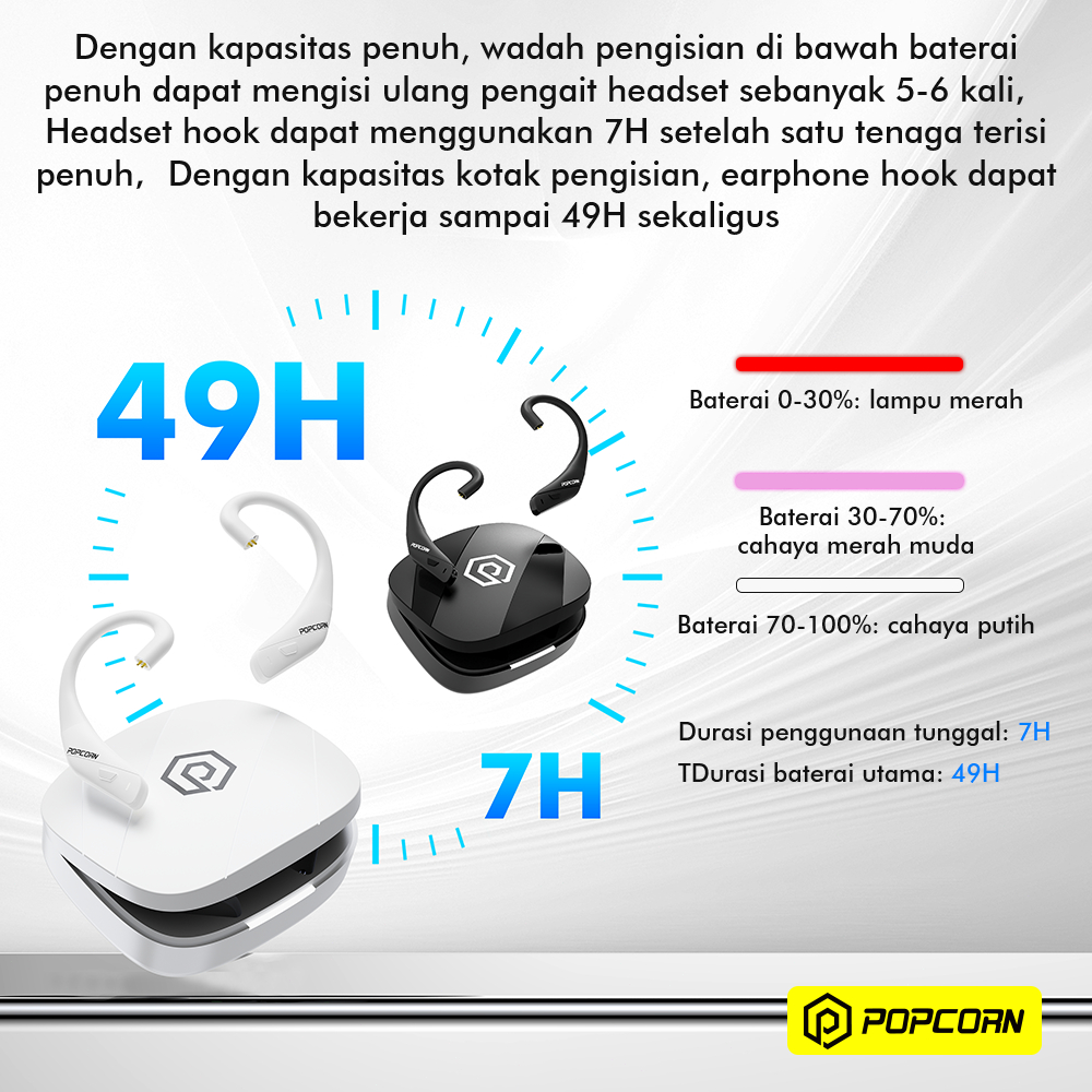 Popcorn Bm01 5.3 Tws Bluetooth Earhook Headset Nirkabel Bluetooth Earphone Tahan Air Siaga Lama