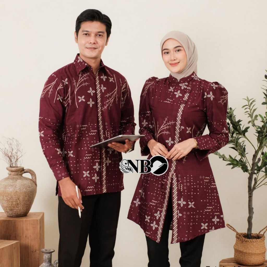 Batik Couple Pasangan Modern Lengan Panjang Busui Bahan Katun Premium