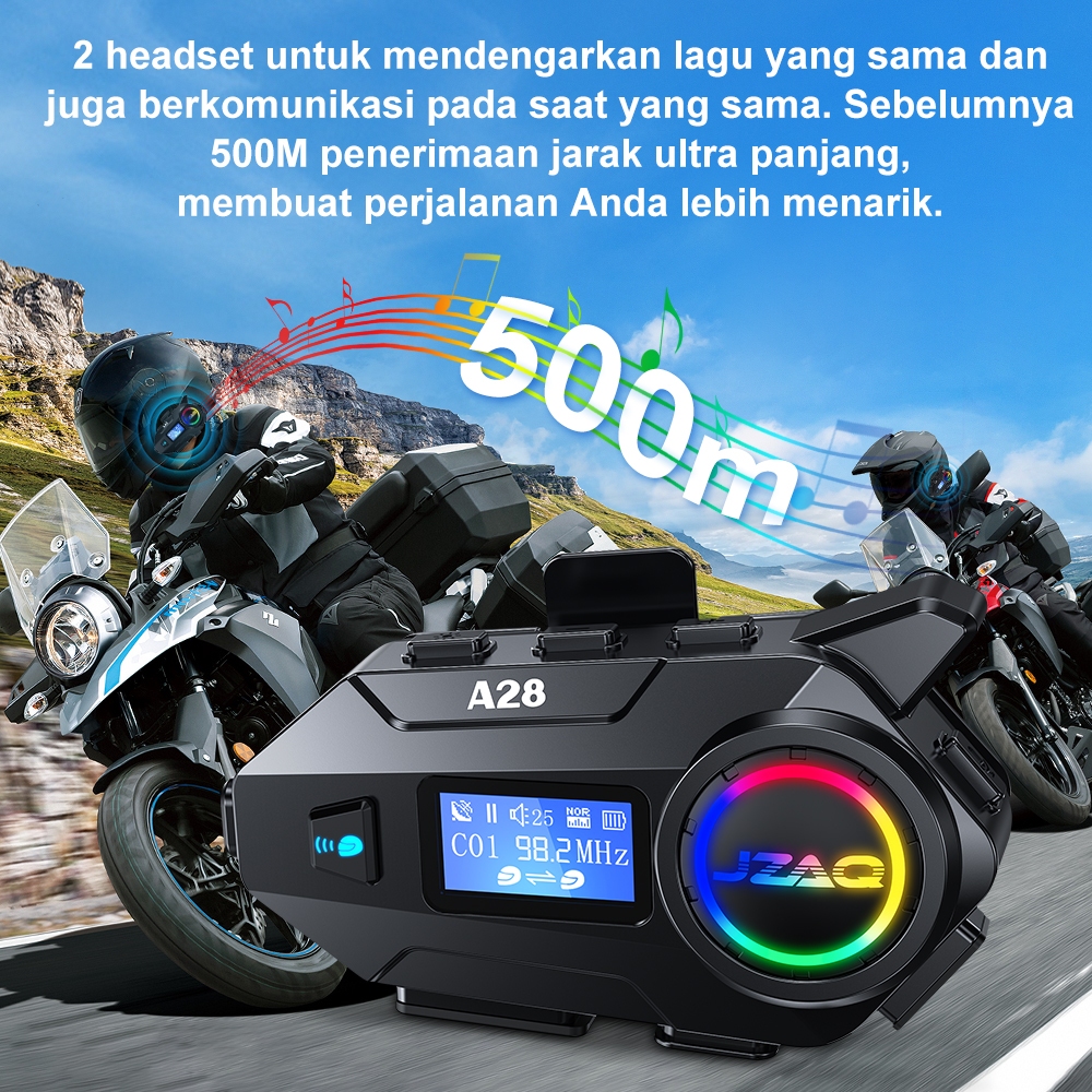 JZAQ A28 Interkom Helm Bluetooth - Pemakaian 120 Jam Baterai 1000mAh BT 5.4 Layar LCD