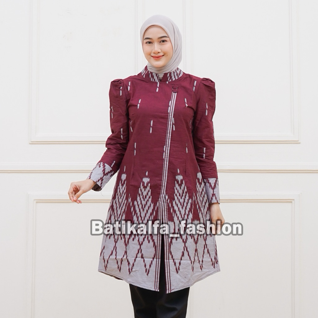 Batik Couple Terbaru Atasan Wanita Model Kebaya Janggan Lengan Puffy Bahan Katun Premium Motif Songket