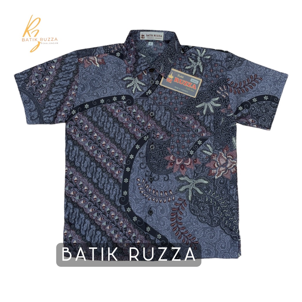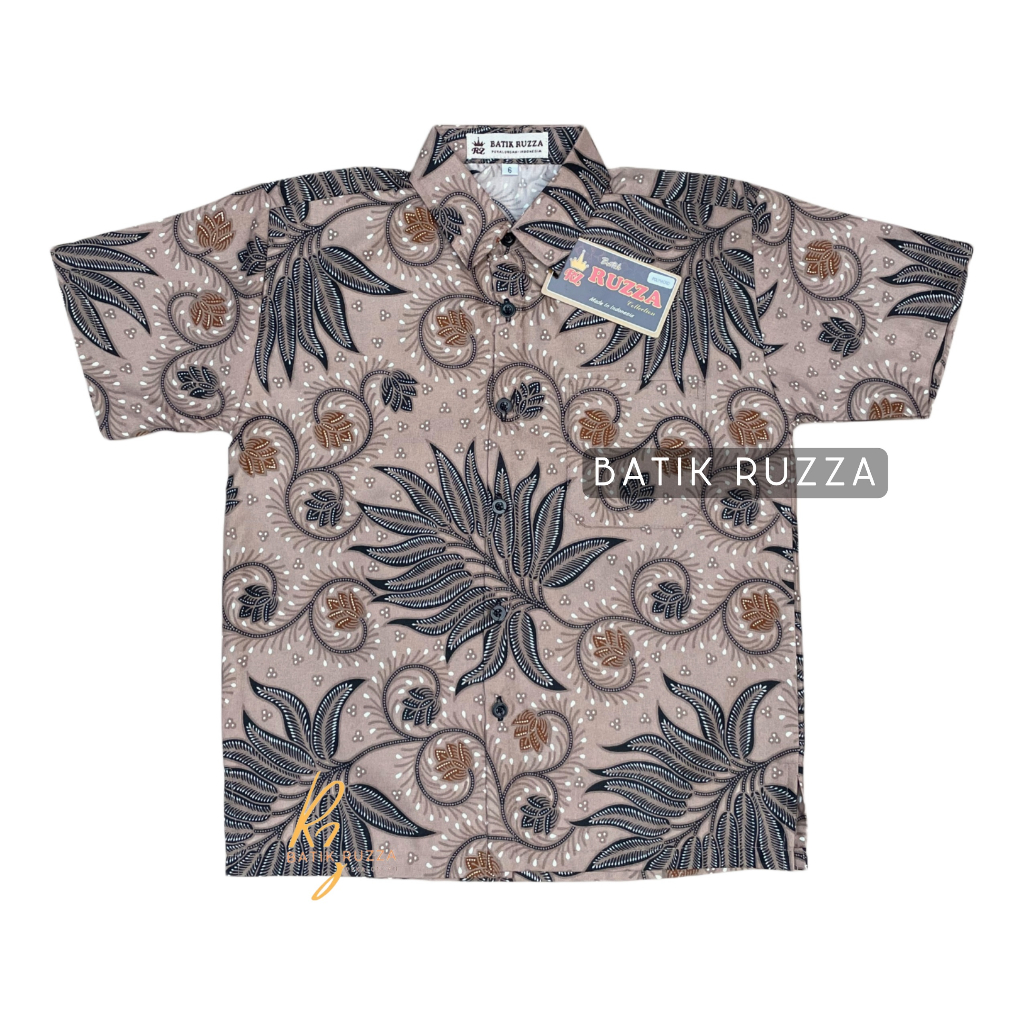 RUZZA Kemeja Batik Anak Laki Ukuran 2-15 Tahun Motif Baron Latte Abu Marun Ungu