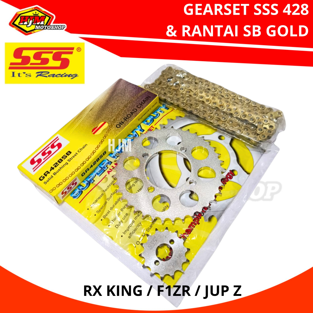 GEARSET SSS RX KING - JUPITER Z - F1Z R - VEGA R NEW 428 & RANTAI SSS GOL-D SB 428 110L