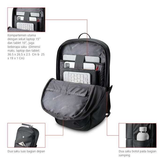 Bodypack Winston Laptop Backpack 15 Inch Tas Ransel Kerja Kuliah Sekolah Durable Tahan Lama 17 L - Hitam