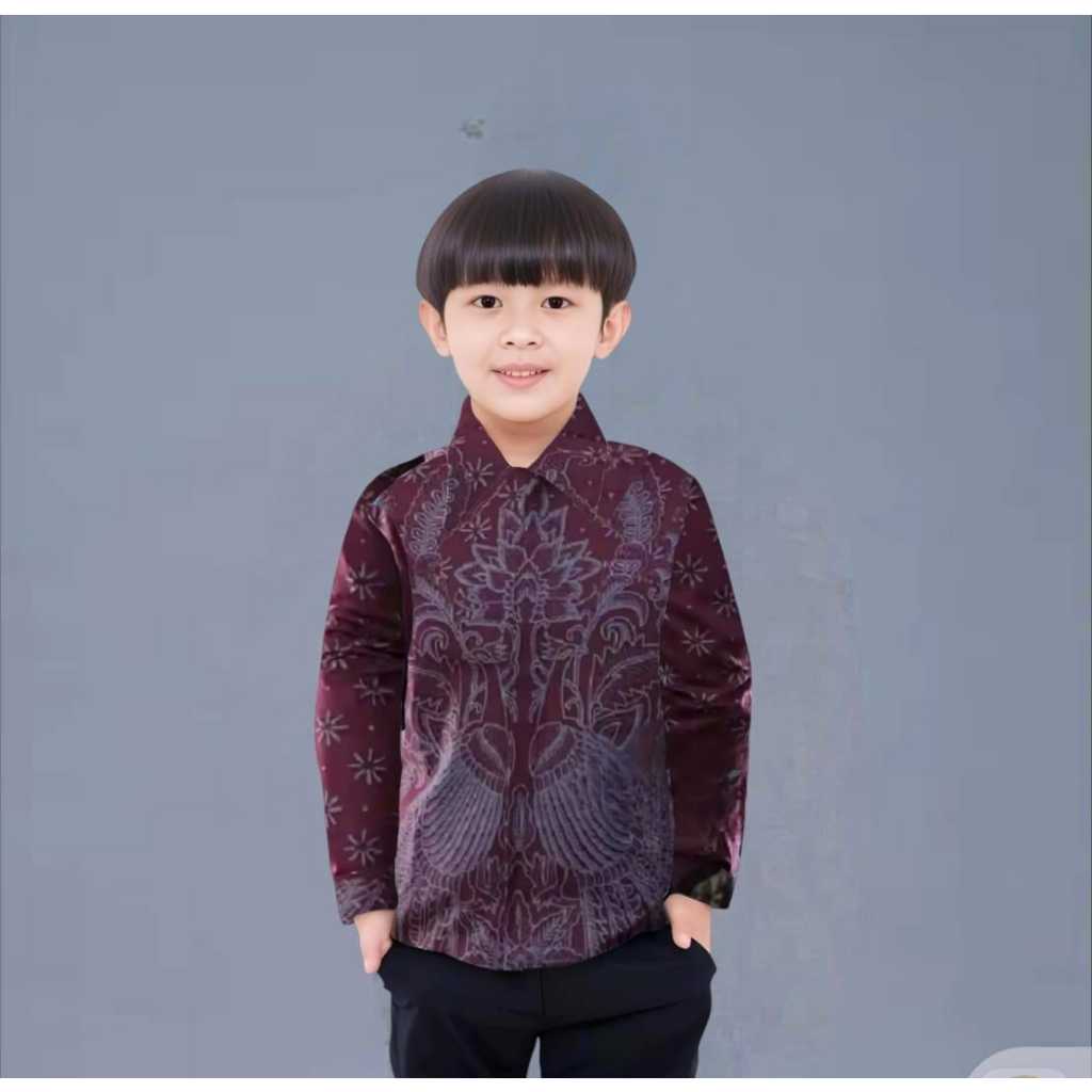 Baju Batik Couple Anak Bapak Terbaru Burgundy Bahan Katun Adem Nyaman