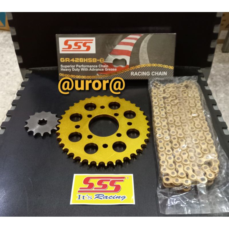 GEAR SET SSS GOL-D SATRIA 120 R / HIU / LUMBA & RANTAI SSS 428 HSBT GOL-D