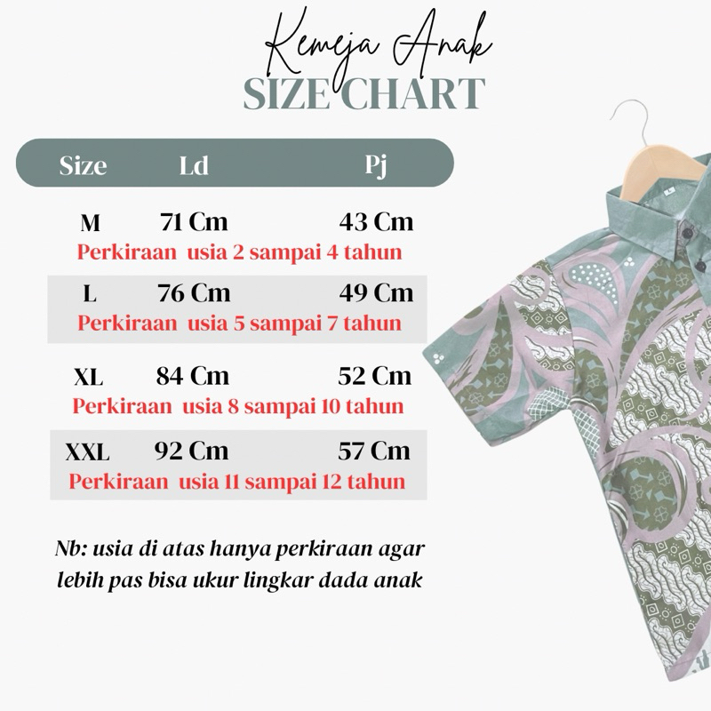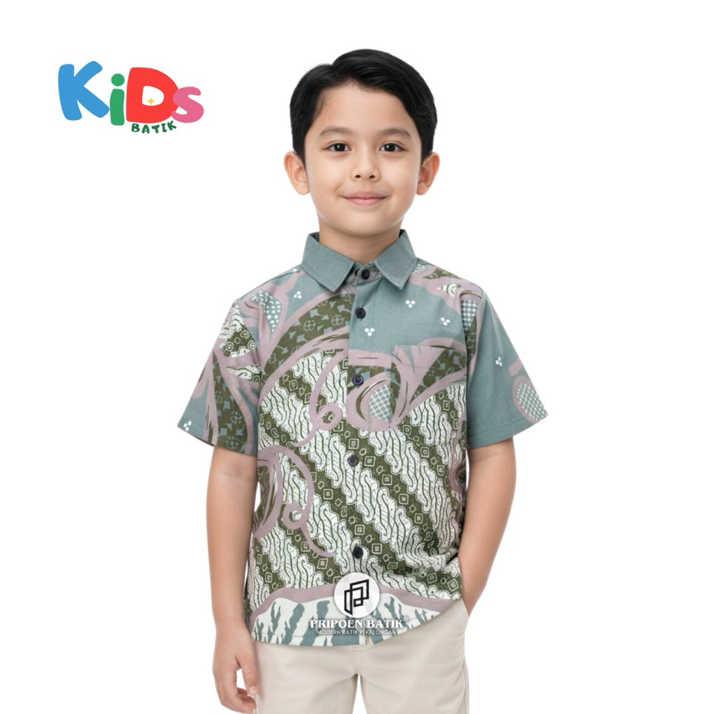 PRIPOEN BATIK kemeja batik anak umur 2-12 tahun warna sage cocok buat kesekolah