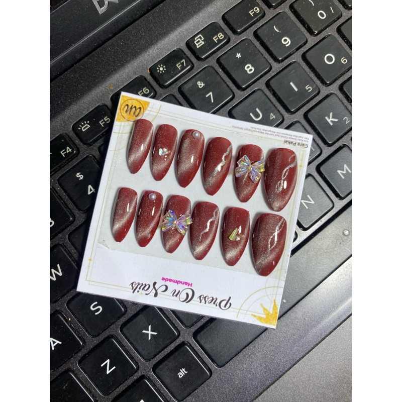 Nail art / kuku palsu cat eye cantik handmade free lem jel