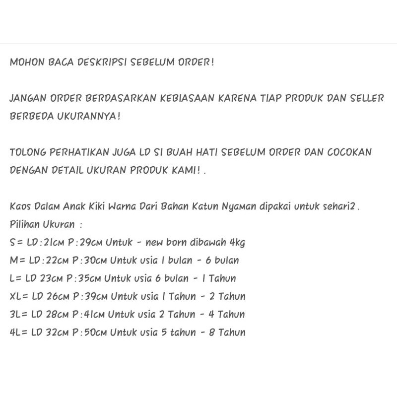 12pcs - Kaos Dalam Bayi & Anak 1-5 Tahun S-XXL Singlet Warna Putih Polos Murah