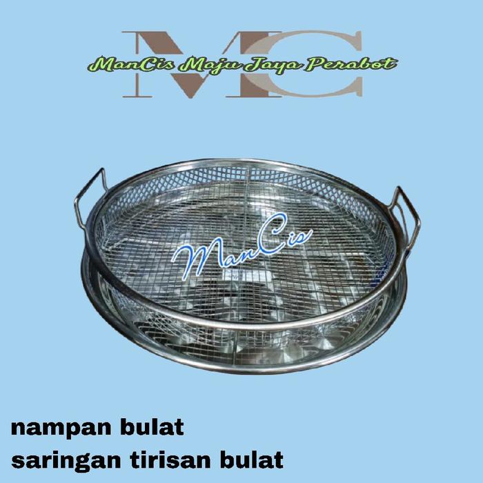 Saringan dan nampan bulat stainless / tirisan gorengan wadah makanan - 1set nampan dan saringan