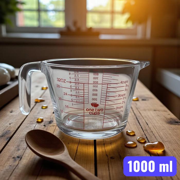 One Two Cups Gelas Ukur Takaran Kaca Microwave Heating Glass ML OZ Cup - GG-18 - 1000ML