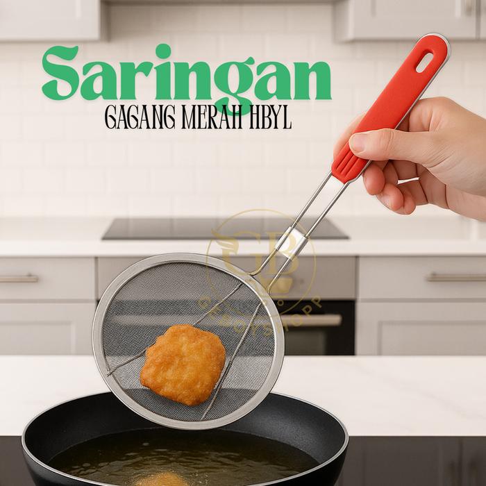 Saringan Stainless Steel Gagang Merah HBYL – Saringan Multifungsi Dapur - HBYL 15CM