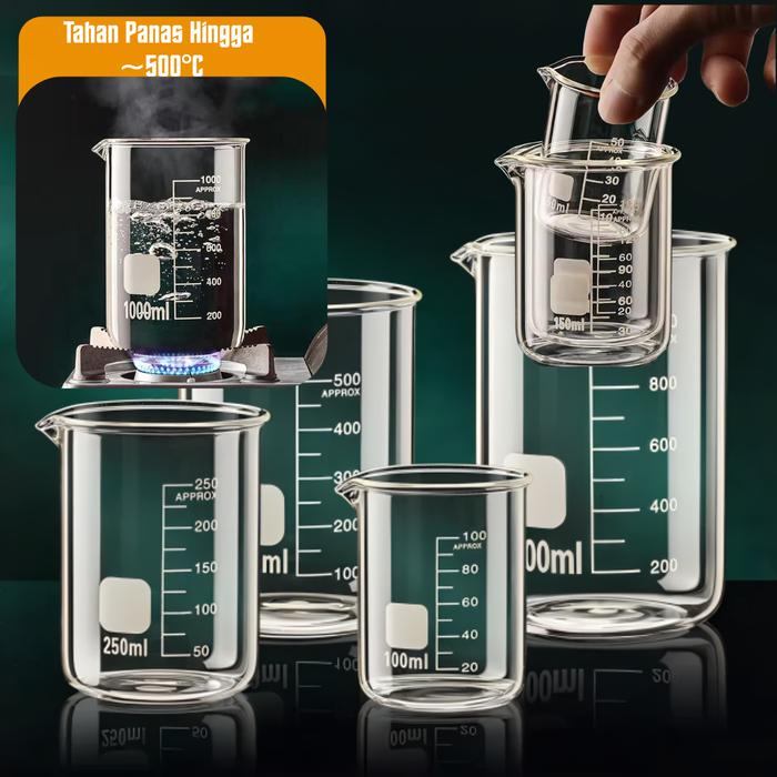 Gelas Ukur Kaca 50-1000ml - Measuring Cup Tahan Panas 500°C Takaran Akurat Presisi - 1000 ml