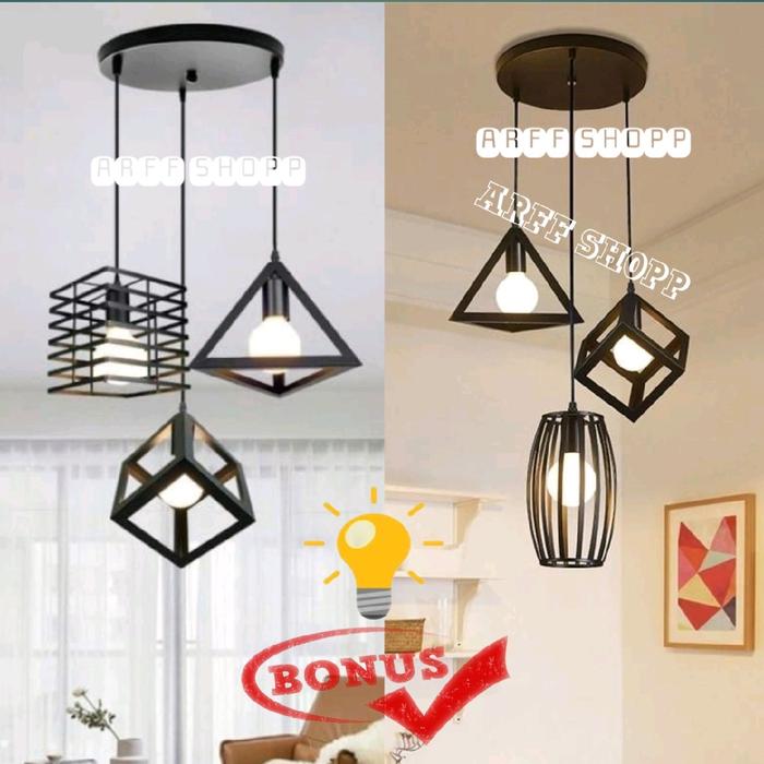 LAMPU GANTUNG LAMPU HIAS MINIMALIS ELEGAN #kombinasi# Bohlam #fulset - 3D kotak base bulat