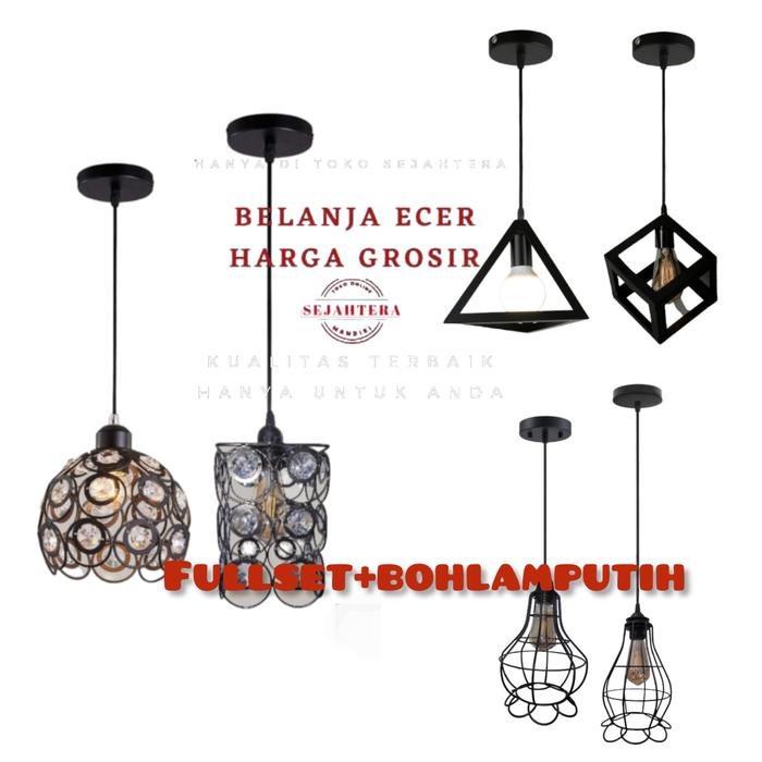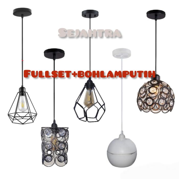 Lampu hias gantung bahan besi fullset termasuk bohlam Putih - 05