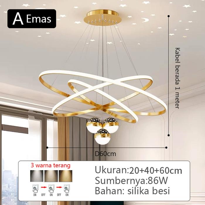 Lampu pendant ruang tamu lampu kamar tidur modern lampu dekorasi toko dalam lampu langit restoran 23 - A-Emas 3 warna