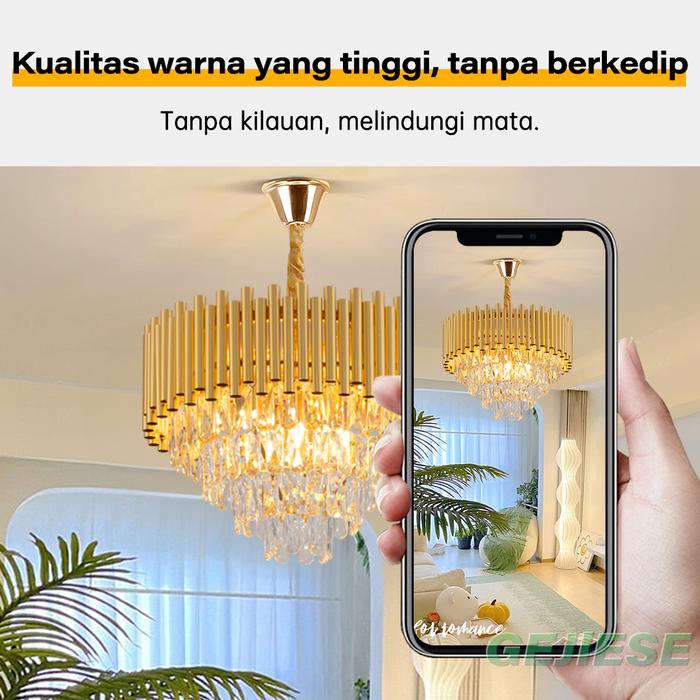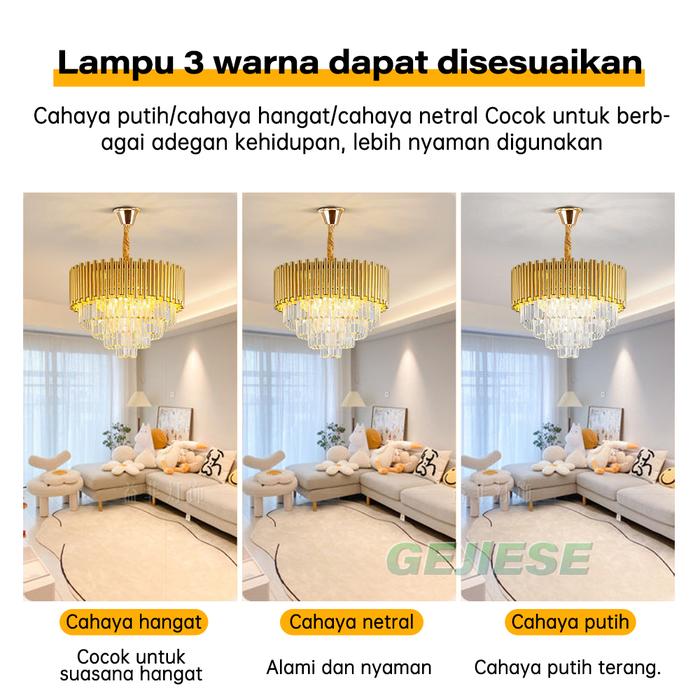 Lampu Gantung Kristal Nordic Dapat Disesuaikan 50CM 3 Warna Lampu Gantung Ruang Tamu Hias mewah - Emas A-107
