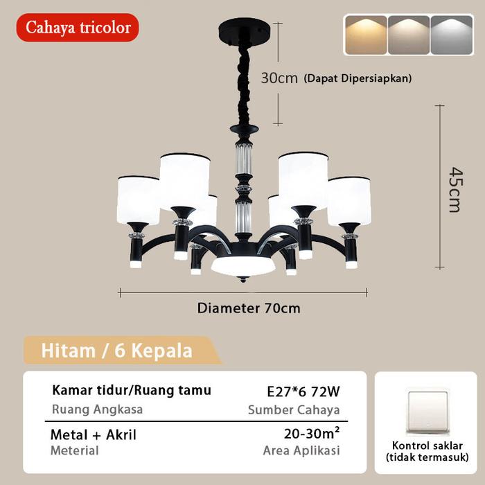 Lampu gantung ruang tamu aesthetic lampu gantung minimalis modern lampu plafon led hias kamar tidur - 6 kepala