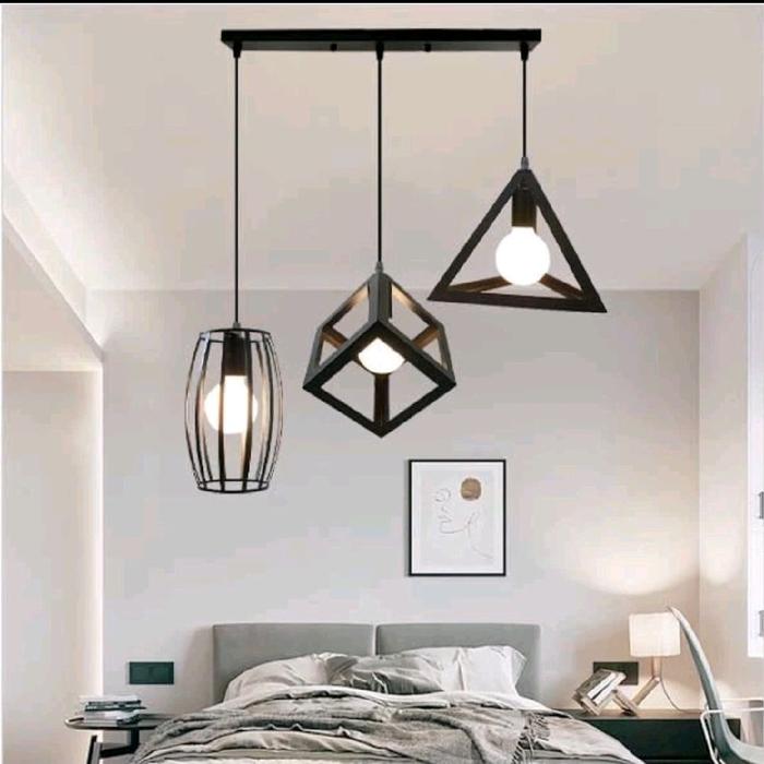 Lampu gantung+ Bohlam variasi cabang 3 panjang Besi Hitam - variasi FH panjang+bohlam
