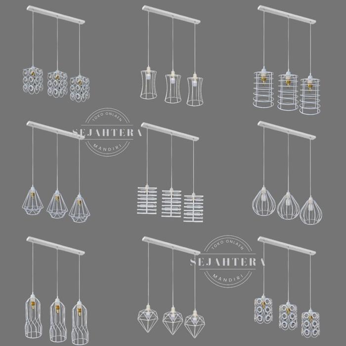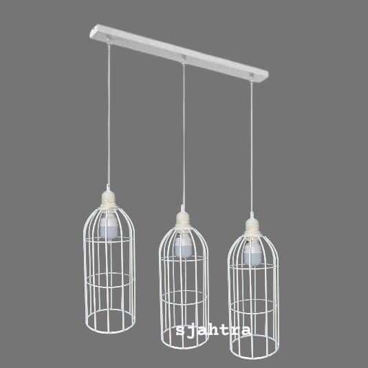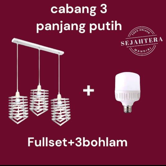 lampu hias gantung cabang 3 panjang warna putih Besi - 02cp3putih+3bohlamputih