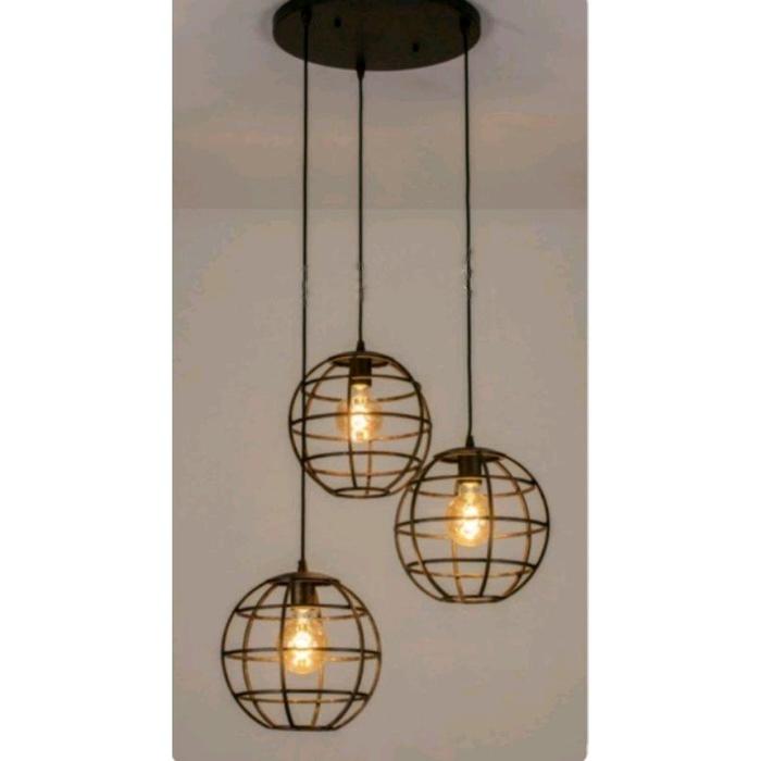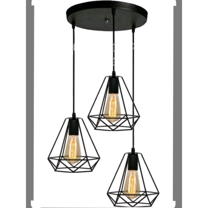 Lampu hias gantung full set+bohlam 3 Bulat - diamond kap bulat+bohlam putih 3