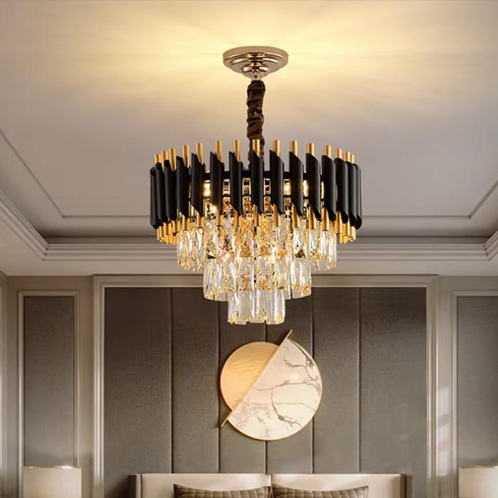 DUNIA LAMPU LAMPU GANTUNG KRISTAL BULAT HITAM LAMPU GANTUNG 3 SUSUN LAMPU GANTUNG AKRILIK LAMPU GANTUNG 40 CM - HITAM