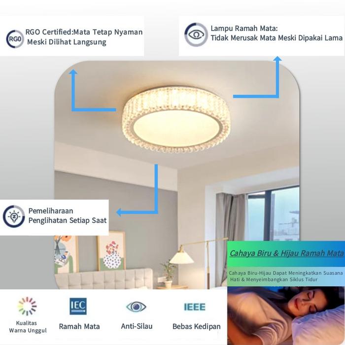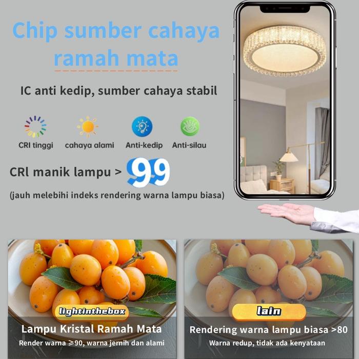 Krisal Lampu Gantung Modern untuk Ruang Tamu Lampu Pendant Langit-langit Ruang Makan dengan Remote - Monolayer