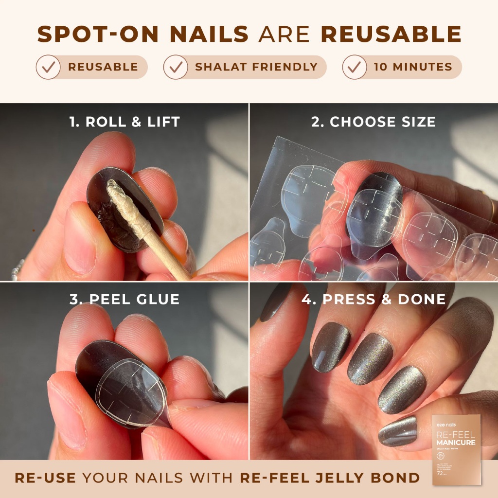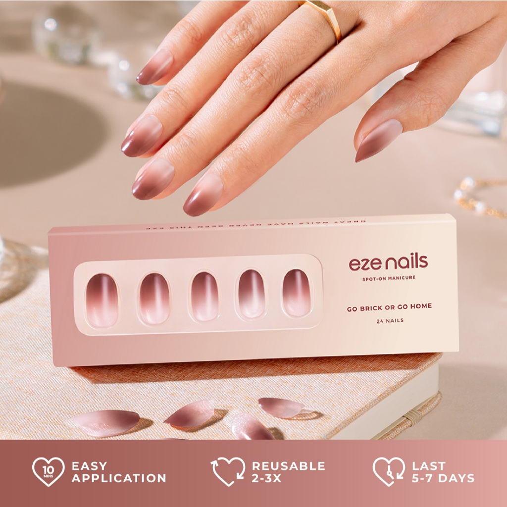Eze Nails - Go Brick or Go Home Spot On Manicure (Kuku Palsu Tempel + Jelly Bond)