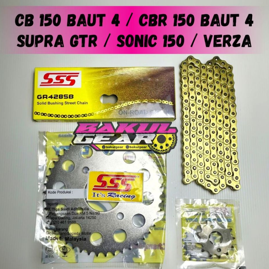 Gear Set SSS CB150r CBR150r Verza Sonic 150r Supra GTR Tiger Megapro GL CB Rantai 428
