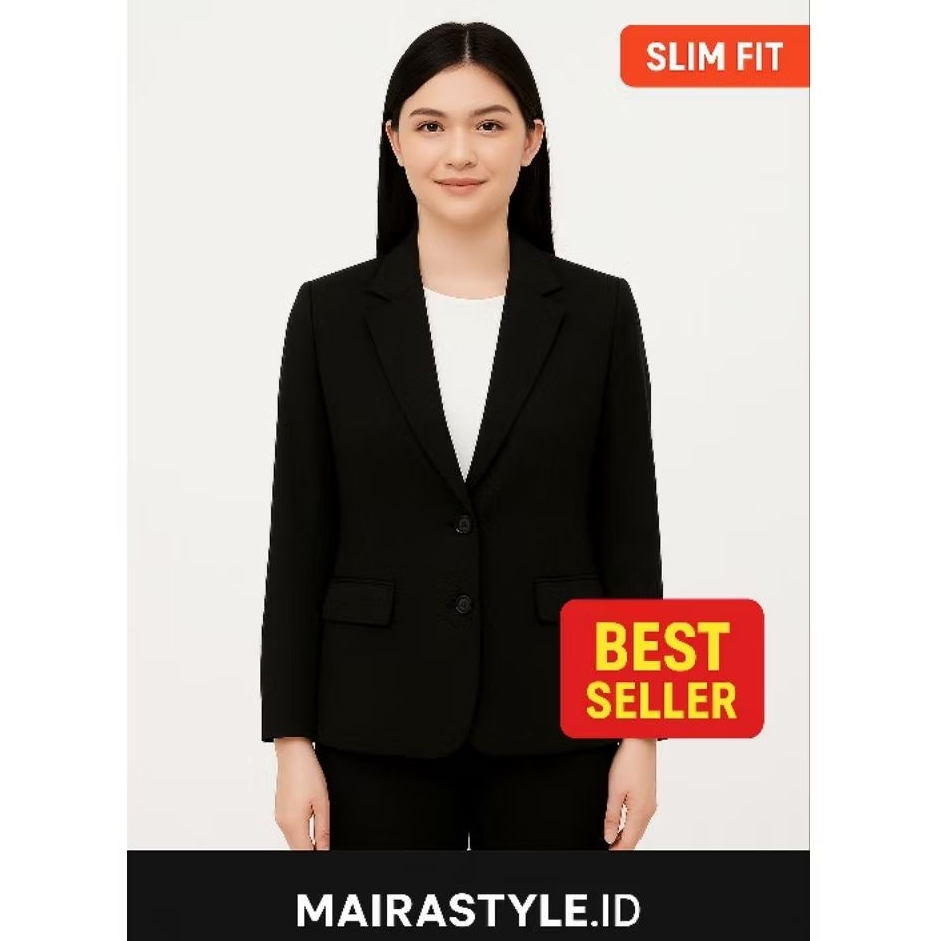 Blazer Kerja Wanita Slim Fit Hitam Abu – Ukuran S–5L | Jas Formal Elegan Mairastyle