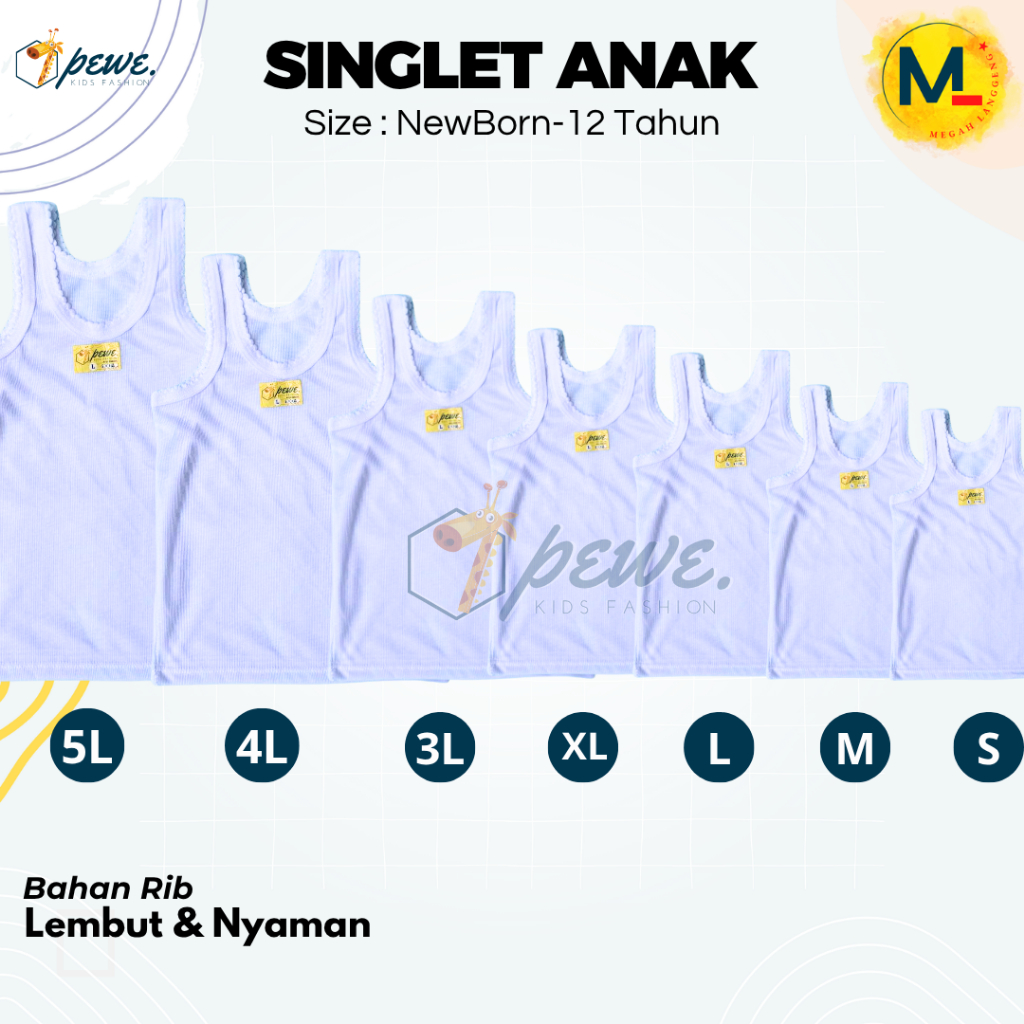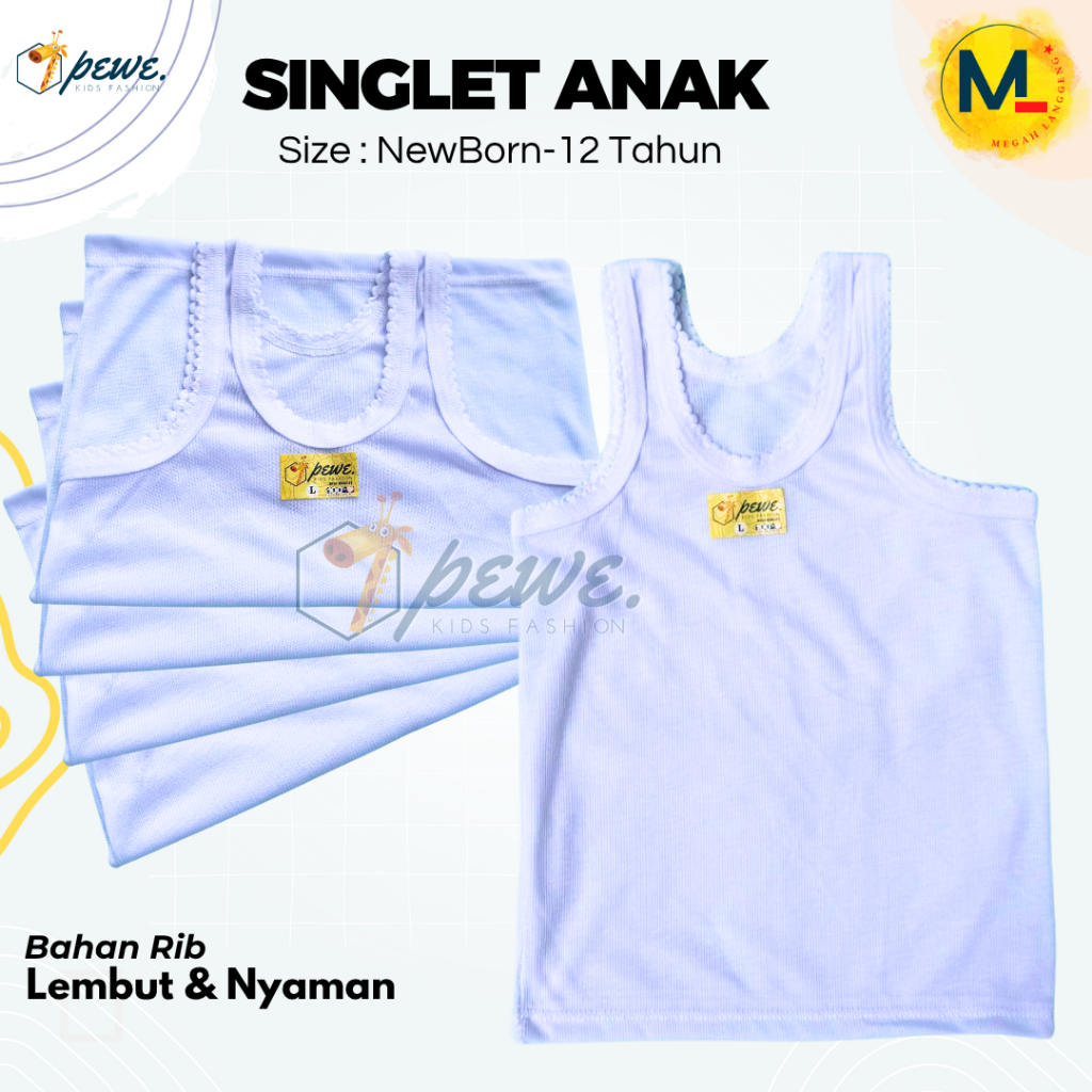 12 Pcs Kaos dalam anak perempuan & laki laki usia 1 tahun -10 tahun Nyaman digunakan / singlet Warna Putih Tanpa Bo