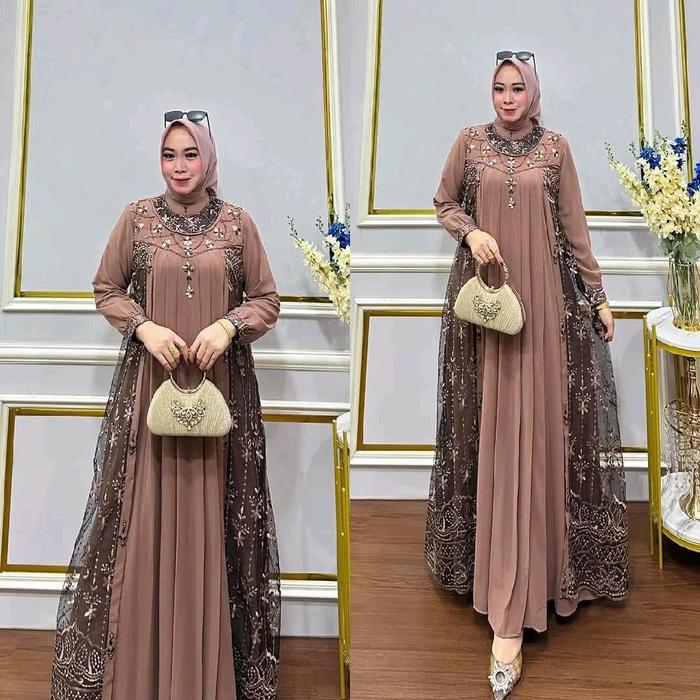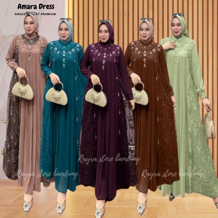 Amara Dress Wanita Gamis Remaja Dewasa Pesta Kondangan Mewah Elegant Terbaru 2026 Viral Kekinian Bahan Ceruty Babydoll M