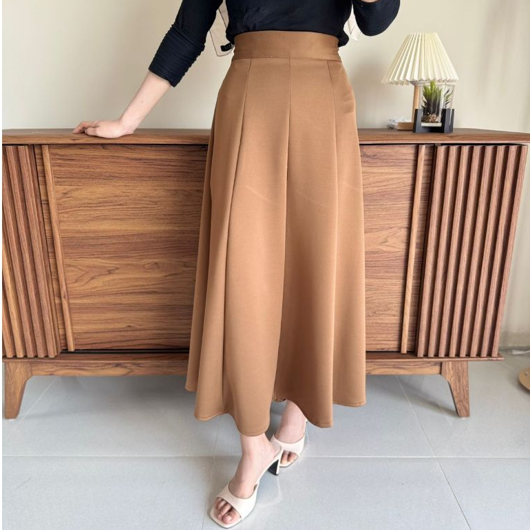 HarukaSkirt-KoreanLooseMaxiSkirtRokWanitaAntiKusutPolyester-RokFlareWanita-RokBasikPolos-MaxiSkirtRokMayungPanjangWanita