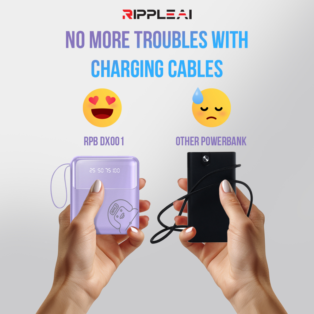 Ripple Powerbank Portable 10000Mah Digital Display 4 Cables Multiple Device Fast Charging