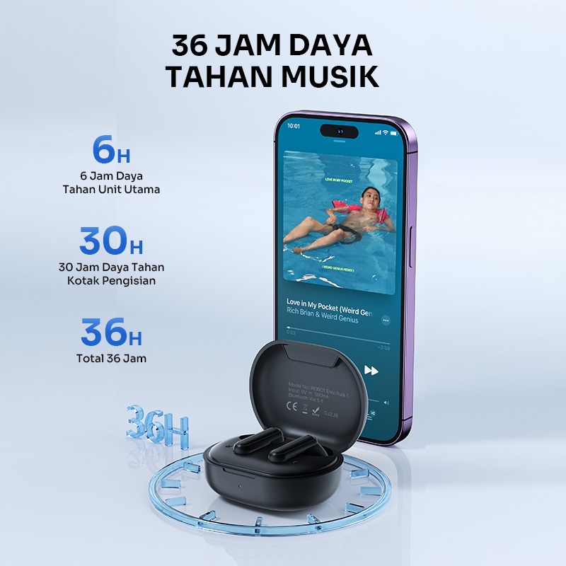 Robot Tws True Wireless Powerfull Bass Semi In-Ear Mini Earbuds Bluetooth 5.4 Sports Earphones Headphones In Mic Enco Bu