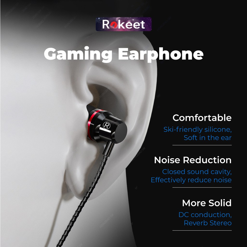 Rokeet Headset Earphone Gaming Mega Bass Wired Jack 3.5Mm Mic For Android Iphone Universal Original