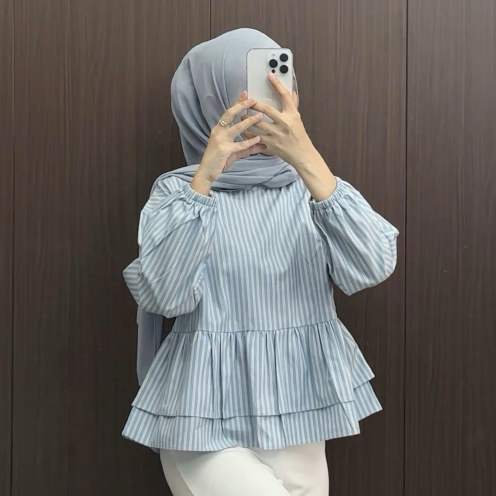 Blouse Ruffle - Atasan Wanita Strip - Blouse Wanita Strip