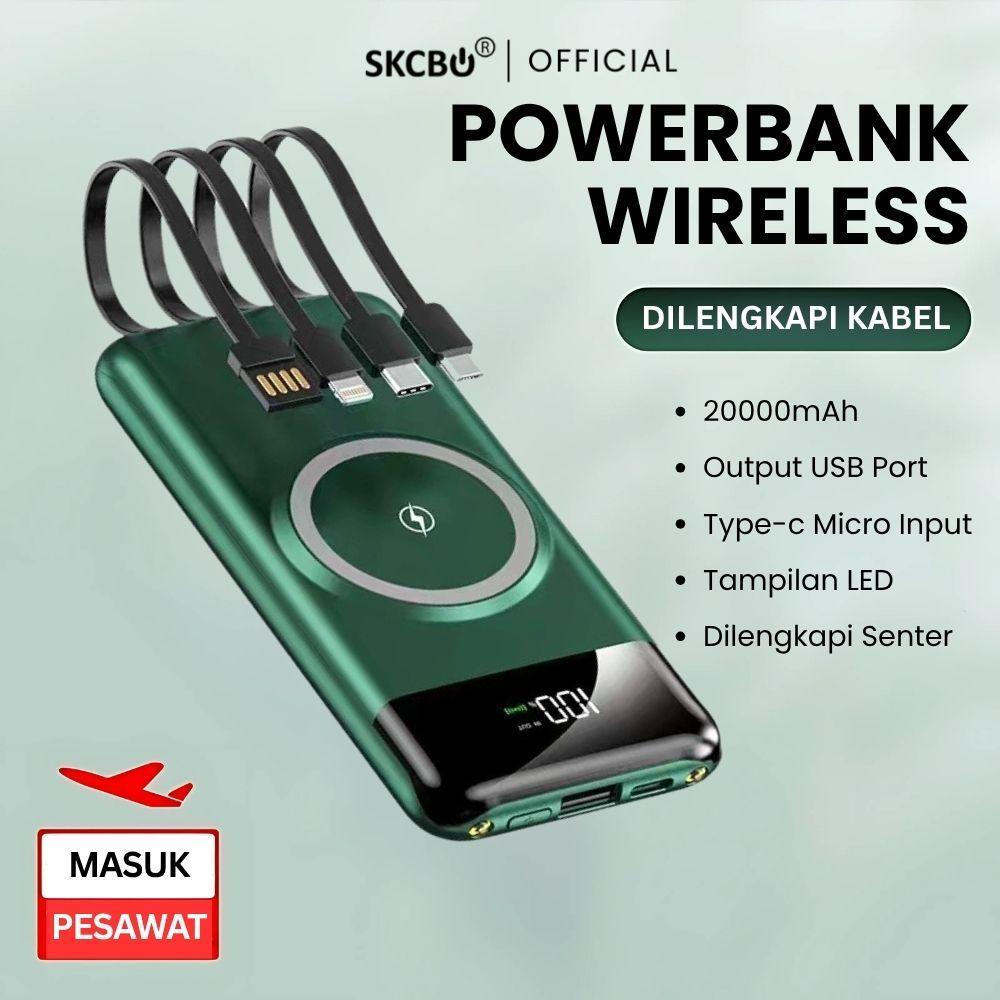 Skcbo Wireless Powerbank 20000Mah Built In Cable Kompatibel Dengan Semua Ponsel Ori For Iphone Android