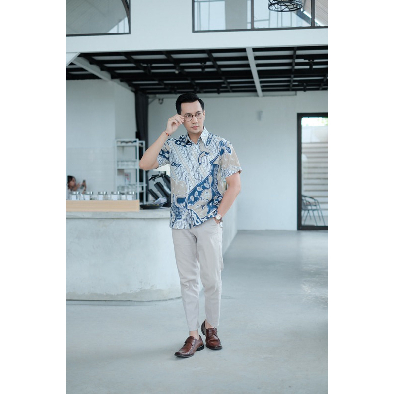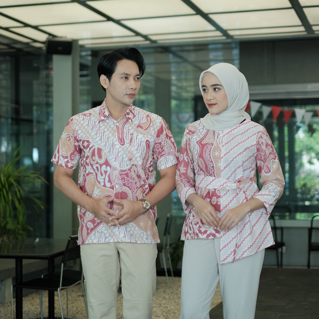 Brawee Baju Batik Couple Pria Wanita Blus Batik Couple Kerja Kejora Biru