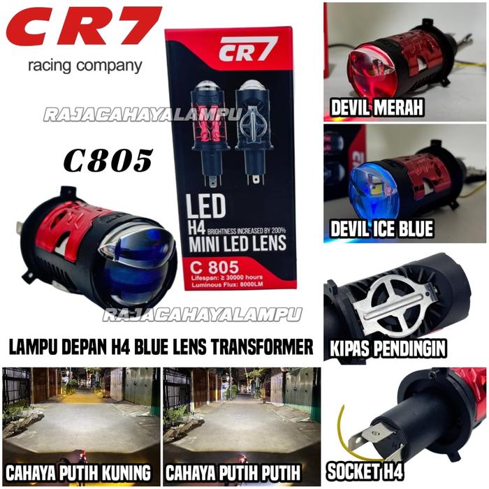Lampu Depan H4 Cahaya Biled Cr7 C805 Transformer Blue Lens Biled Mini Universal Lampu Utama Motor Mobil - Cr02 - Devil I