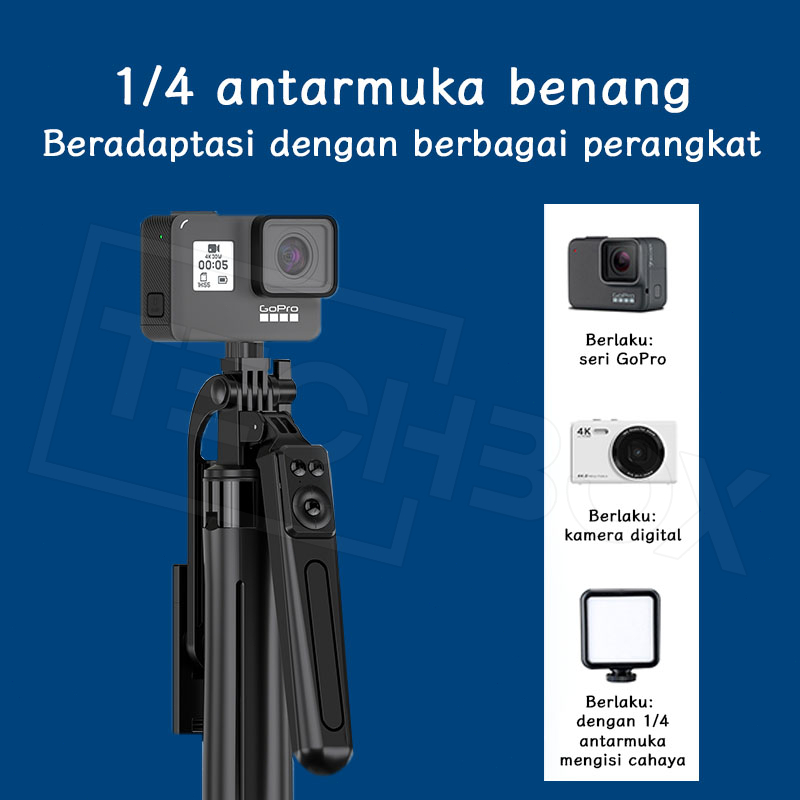 Tech Tongsis Tripod Bluetooth 180Cm Paduan Aluminium Selfie Stick 4-Leg Stand Remote Tripod Hp Kamera Dslr Tongsis Denga